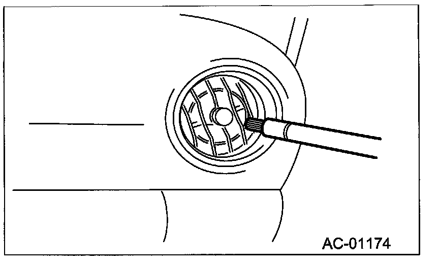 Turn the ignition key to ON position, and run the blower at high speed for 1 minute. Stop the blower to check the ventilation grille on the instrument panel. While moving the tester closer to the grille, run the blower for 1 or 2 seconds, then stop it. Check the grille at that point for at least 10 seconds.