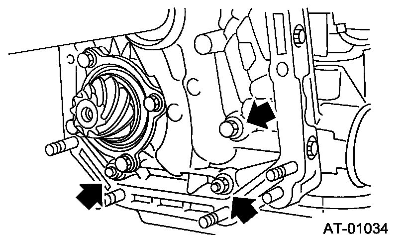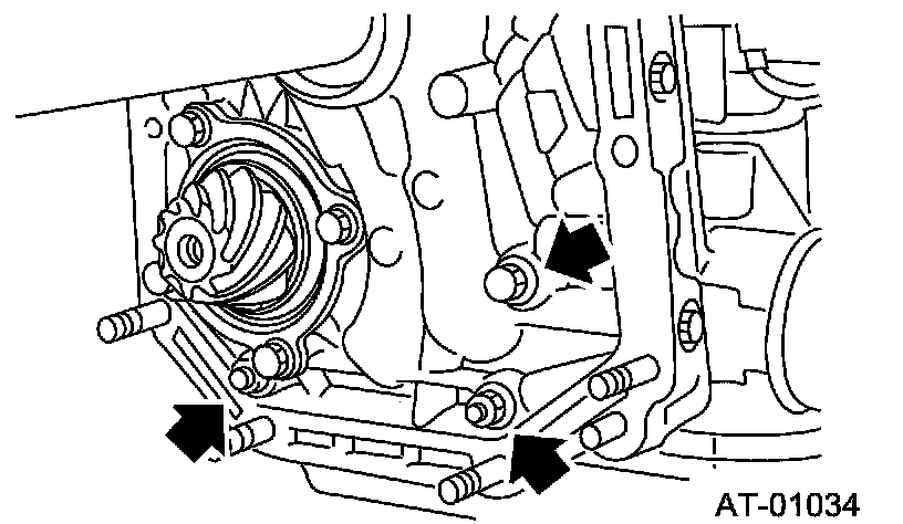 Install the oil pump housing assembly to the converter case, and secure evenly by tightening four bolts.