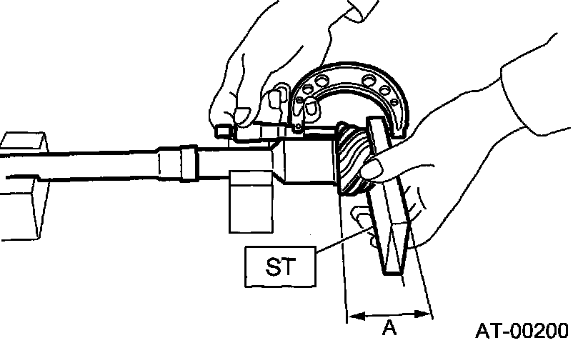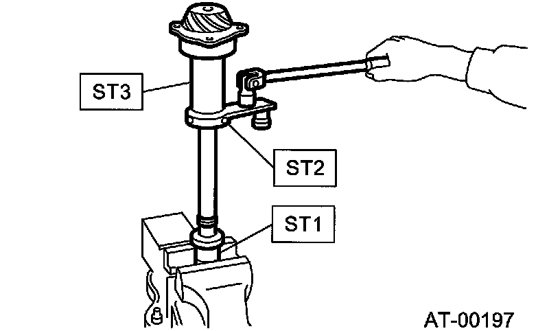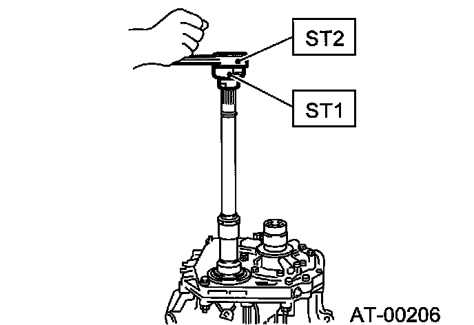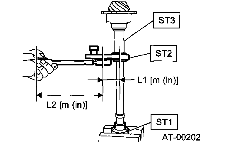 Rotate the drive pinion several times with ST1 and ST2.
