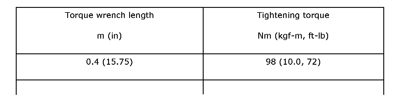 Tightening torque: 41 Nm (4.2 (kgf-m, 30.4 ft. lbs.)