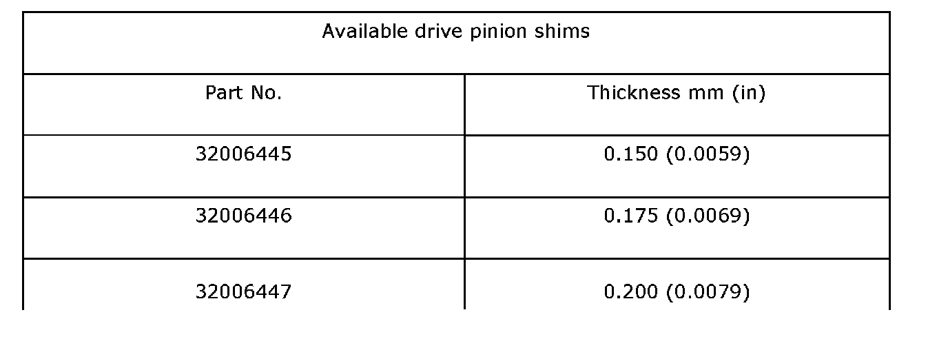 Available drive pinion shims (Part 2):