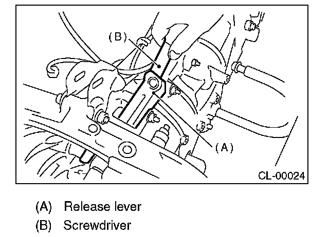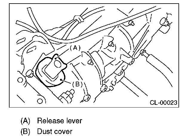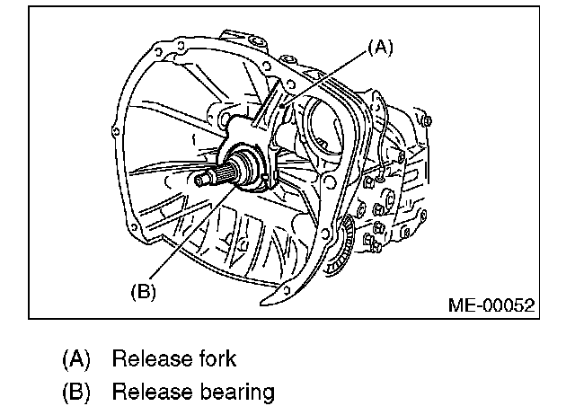 2. Remove the two clips from release lever and remove the release bearing. (Non-turbo model)
