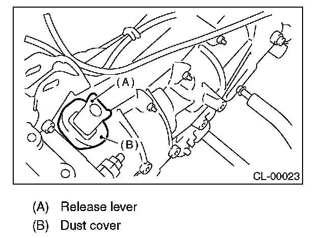 ^ Apply grease (KOPR-KOTE: Part No. 003603001) to the contact point of release lever and operating cylinder.