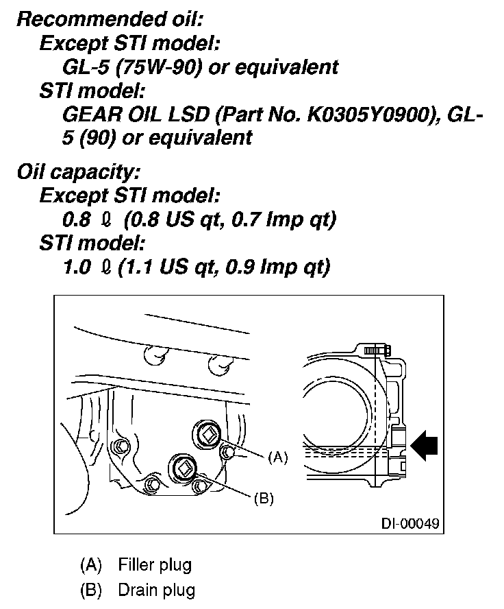^ Use gear oil for the mechanical LSD for STI model.