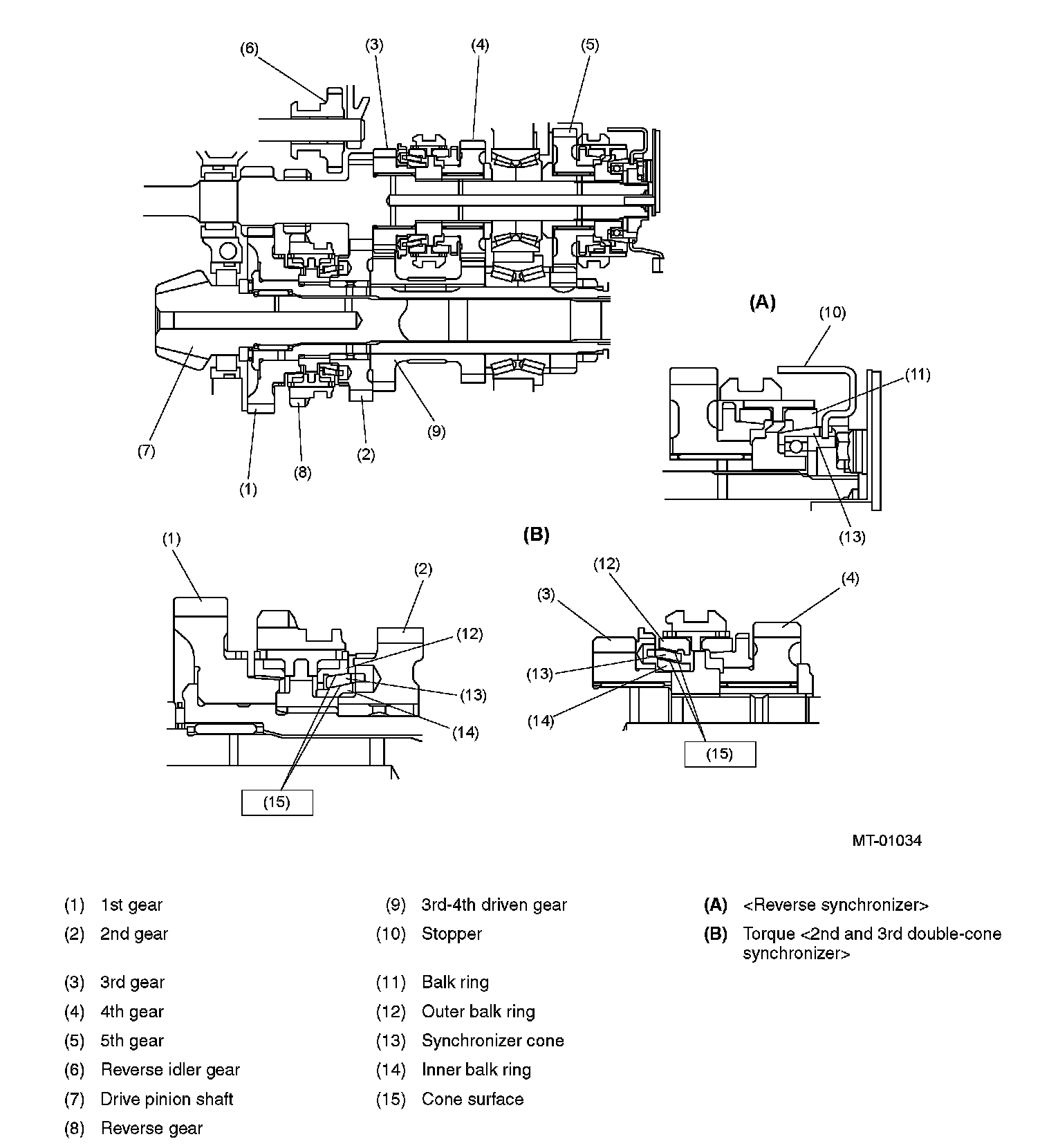 ^ On non-turbo models, a double cone synchromesh mechanism is used for 2nd and 3rd speed gears.