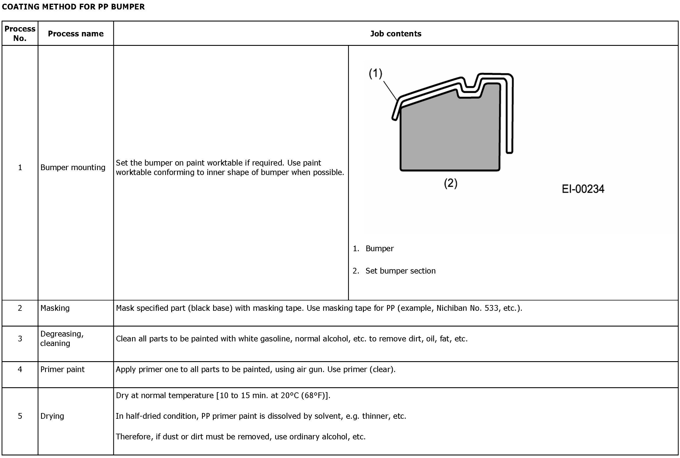 REPAIR INSTRUCTIONS FOR COLORED PP BUMPER