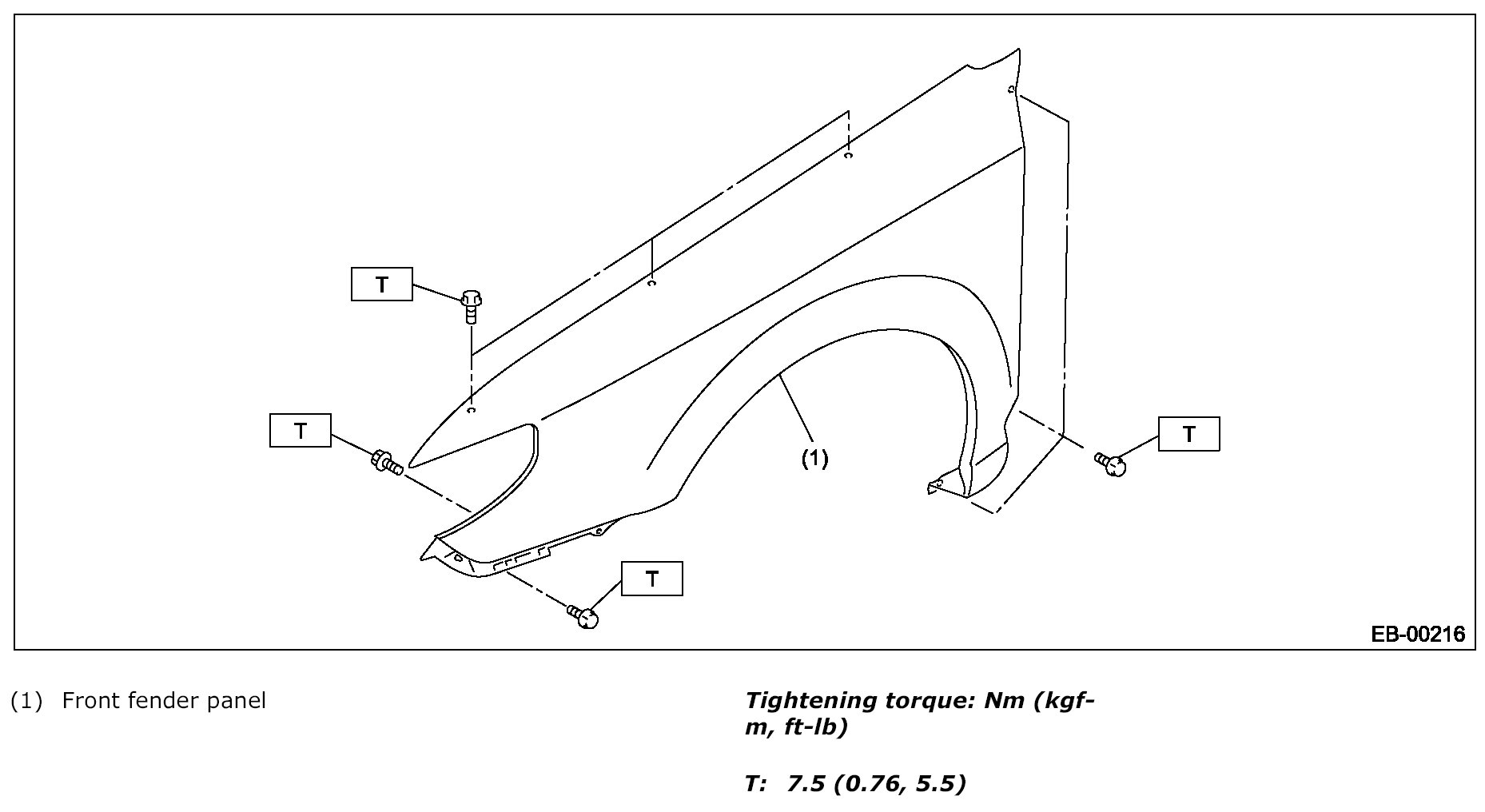 Tightening torque: 7.5 Nm (0.76 kgf-m, 5.5 ft-lb)