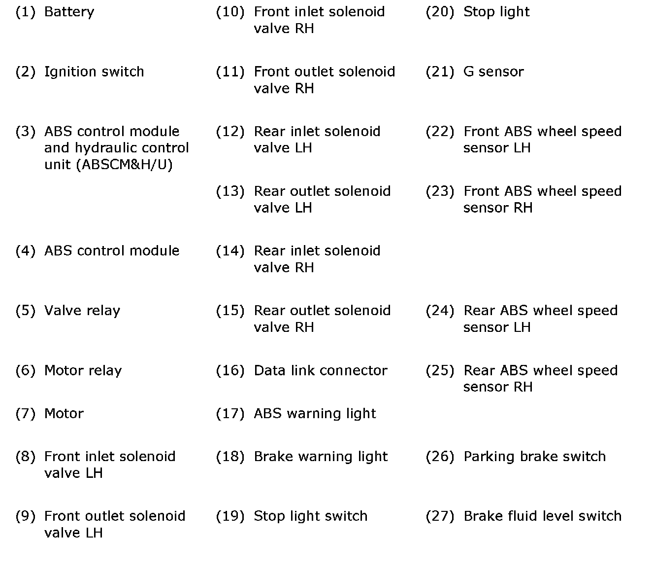 (1) ABS control module and hydraulic control unit (ABSCM&H/U) connector