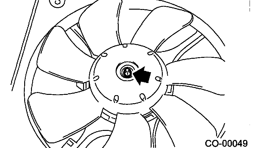 2. Remove the nut which holds the fan itself onto fan motor.