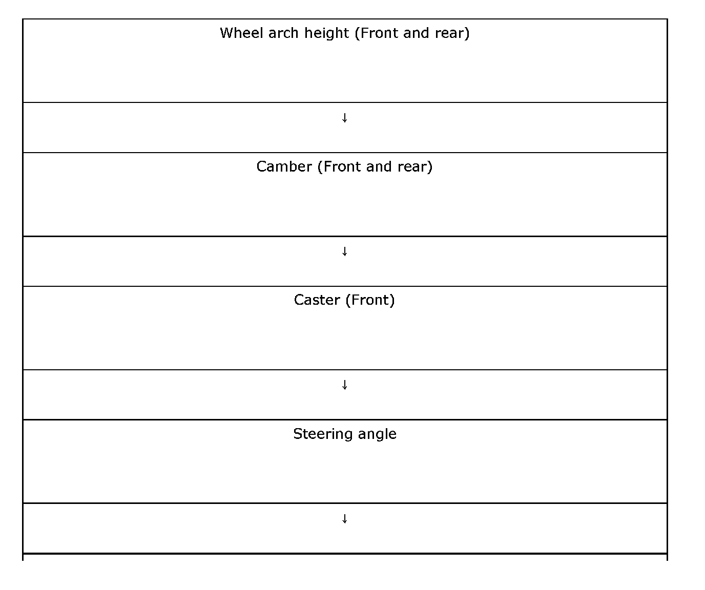 Check, adjust and/or measure the wheel alignment in accordance with procedures indicated in the figure.