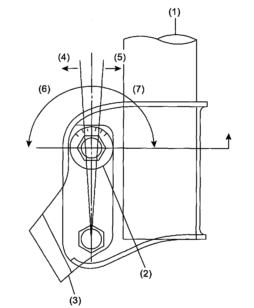 When the right and left adjusting bolts are turned incrementally by one graduation in the same direction, the thrust angle will change approximately 16' ["L" is almost equal to 12 mm (0.472 in)].