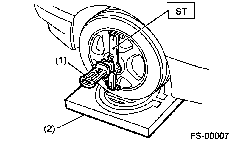 Set the ST into the center of wheel, and then install the wheel alignment gauge.