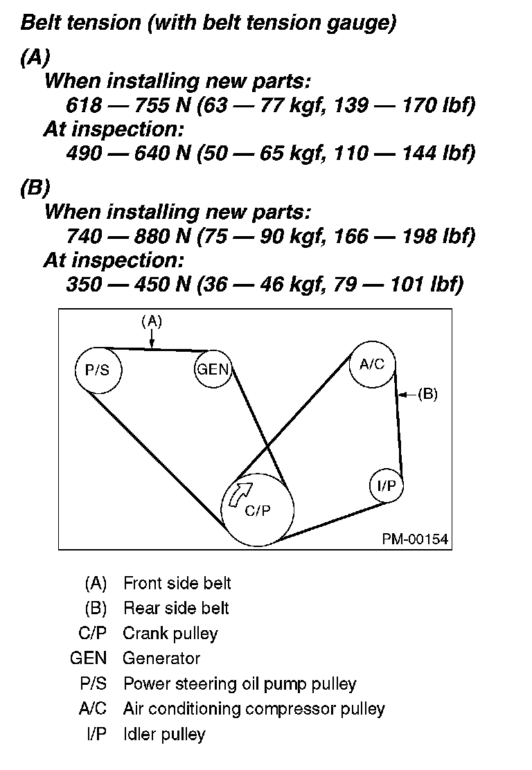 3. Check the V-belt tension and adjust it if necessary by changing the generator installing position or idler pulley installing position.