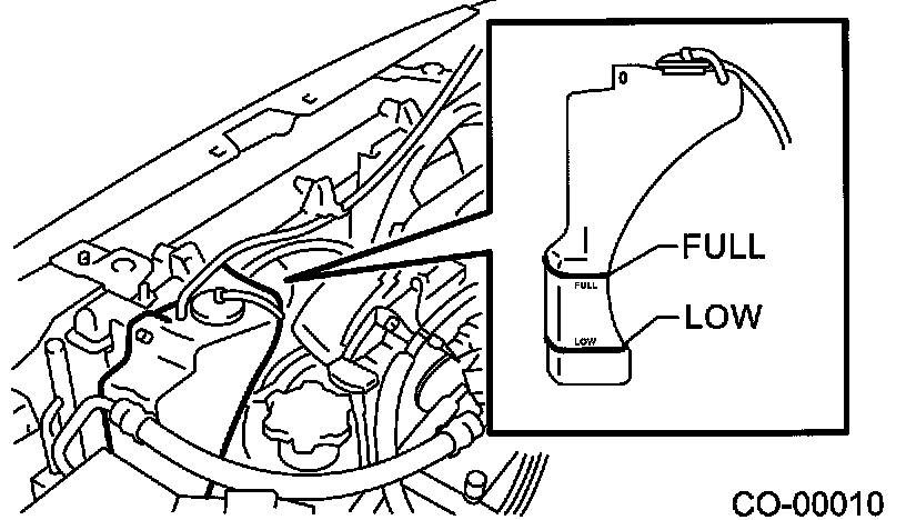 3. Fill engine coolant into the reservoir tank up to Full level.