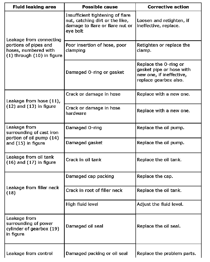 Note: It is likely that although one judges fluid leakage, there is actually no leakage. This is because the fluid spilt during the last maintenance was not completely wiped off. Be sure to wipe off spilt fluid thoroughly after maintenance.