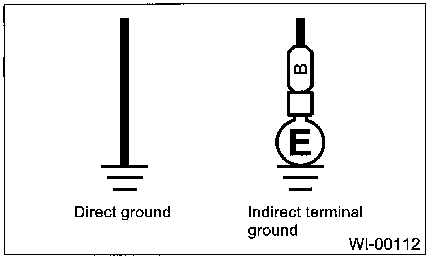 - Each unit is either directly grounded to the body or indirectly grounds through a harness ground terminal. Different symbols are used in the wiring diagram to identify the two grounding systems.