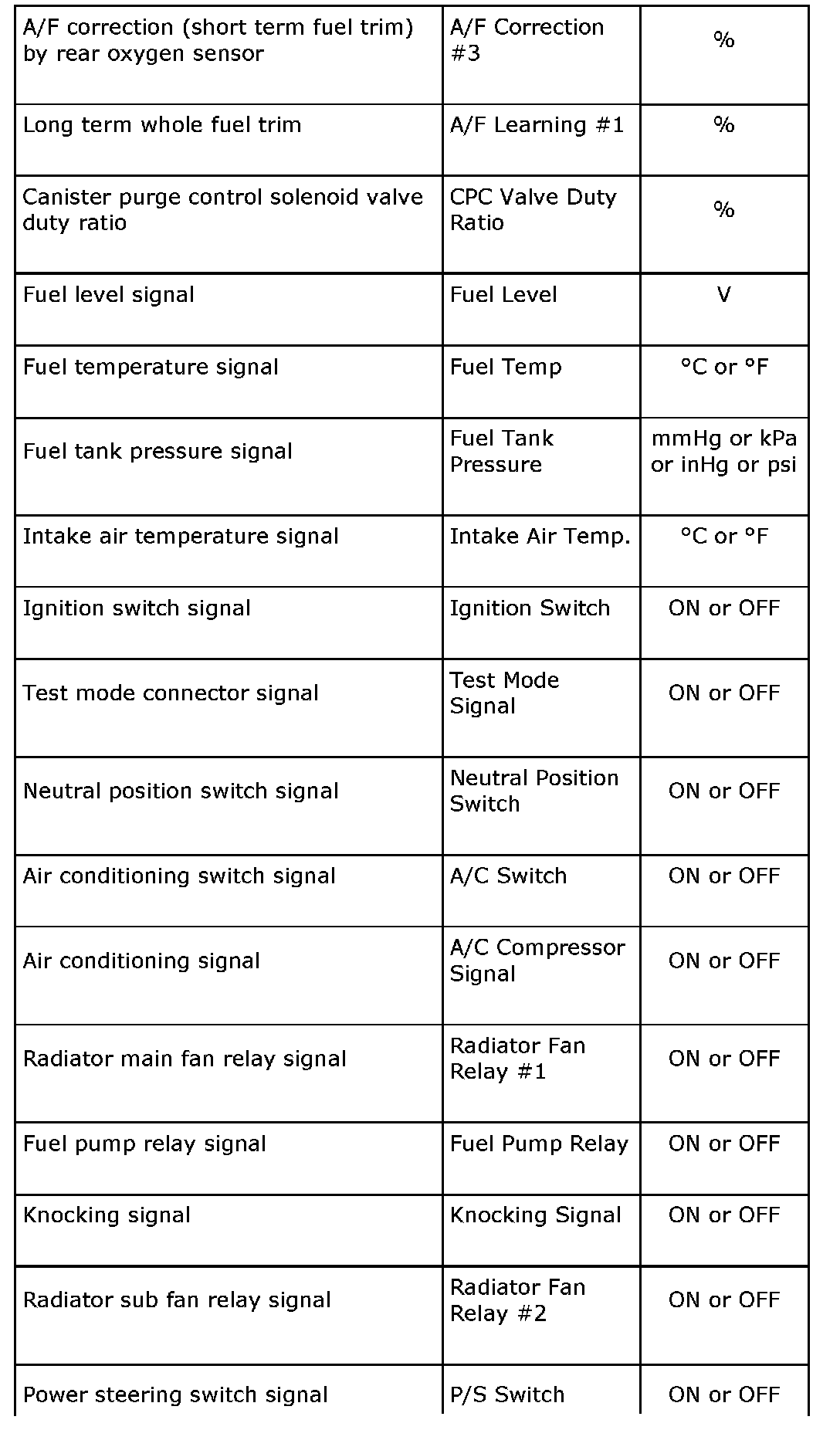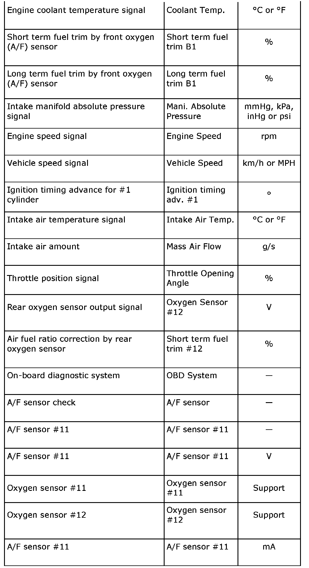 READ CURRENT DATA FOR ENGINE (OBD MODE)