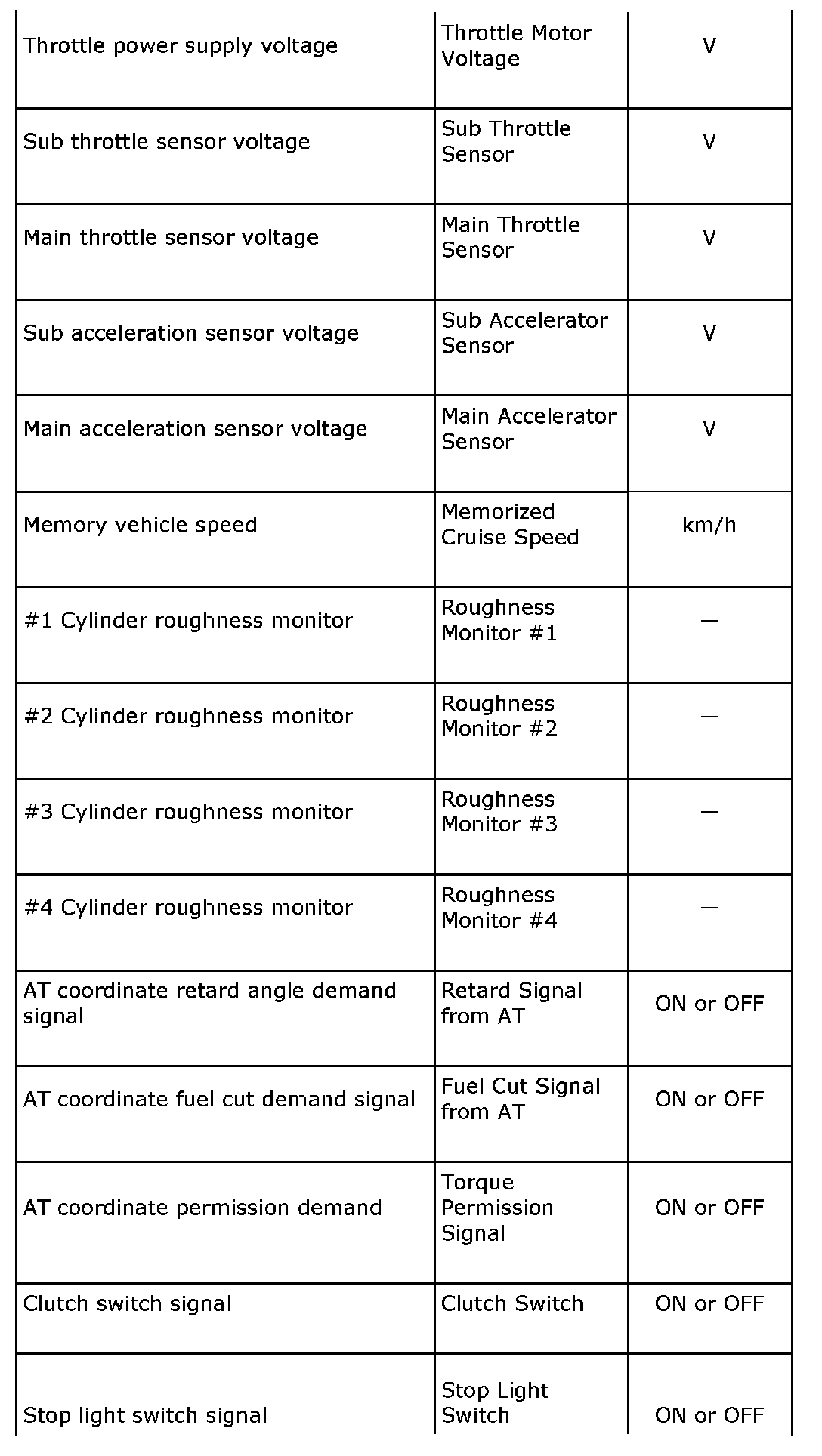 READ CURRENT DATA FOR ENGINE (NORMAL MODE)