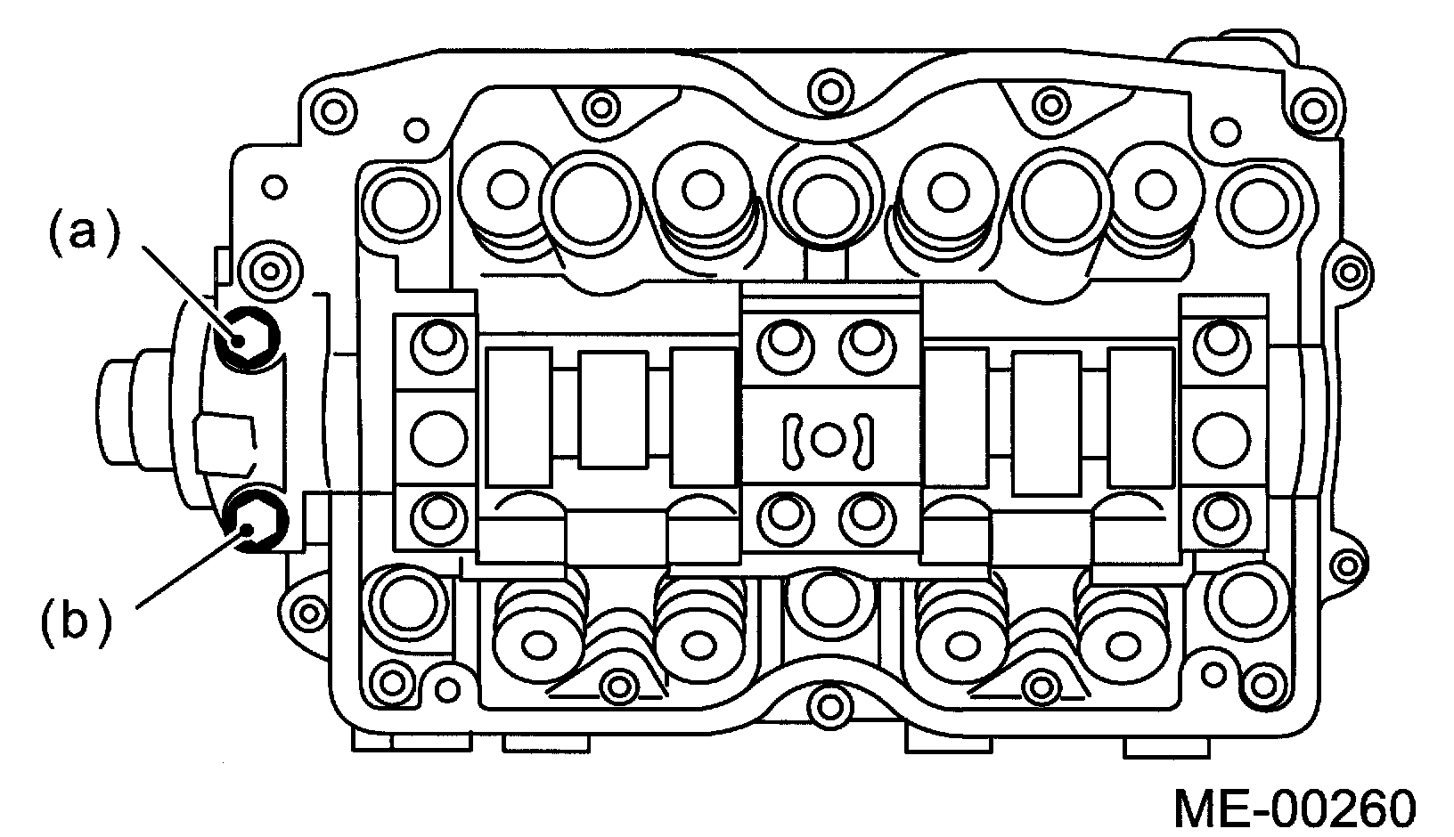 Apply liquid gasket to the mating surfaces of camshaft cap.