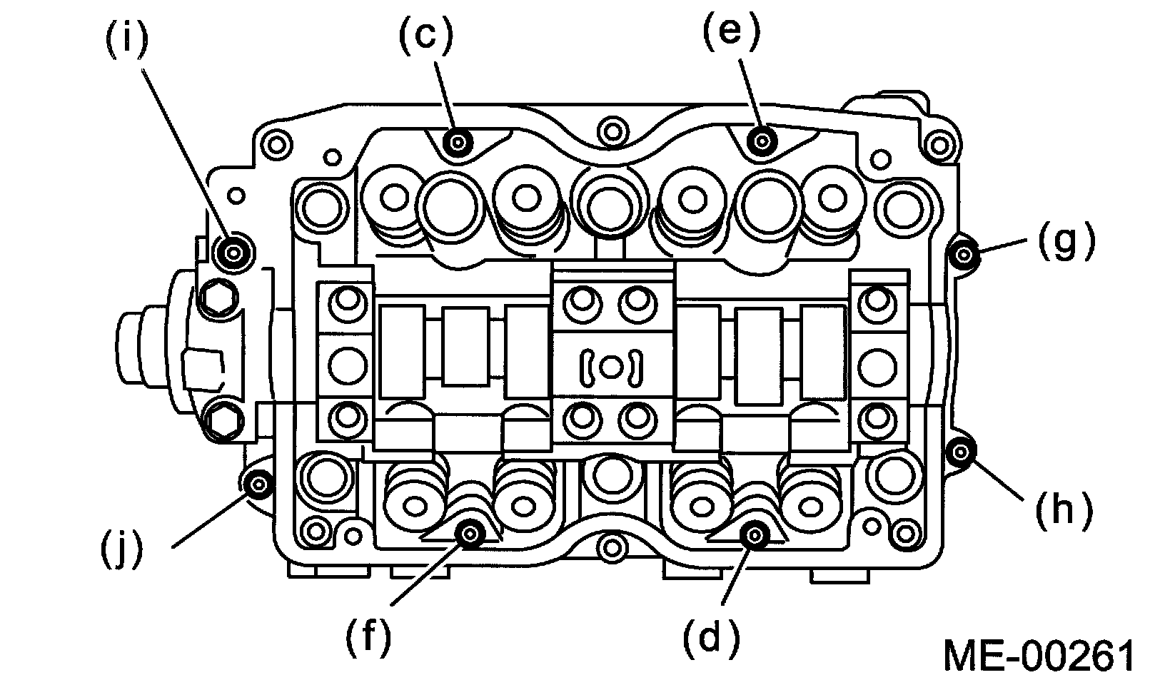 Temporarily tighten the bolts (g) through (j) in alphabetical sequence.