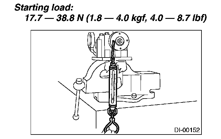 (7) At the same time, measure the total preload of drive pinion. Compared with the resistance when differential case is not installed, if the total preload is not within specification, adjust the thickness of side bearing retainer shims, increasing/reducing by an even amount at a time.