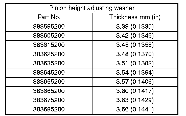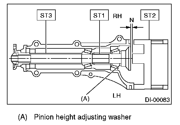 At this time, install a pinion height adjusting washer which is temporarily selected or the same as that used before. Measure and record the thickness.