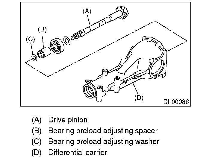 ^ If tooth contact (Drive pinion, Hypoid driven gear) is normal in the inspection before disassembling, verify that the washer is not deformed, and then reuse the used washer.