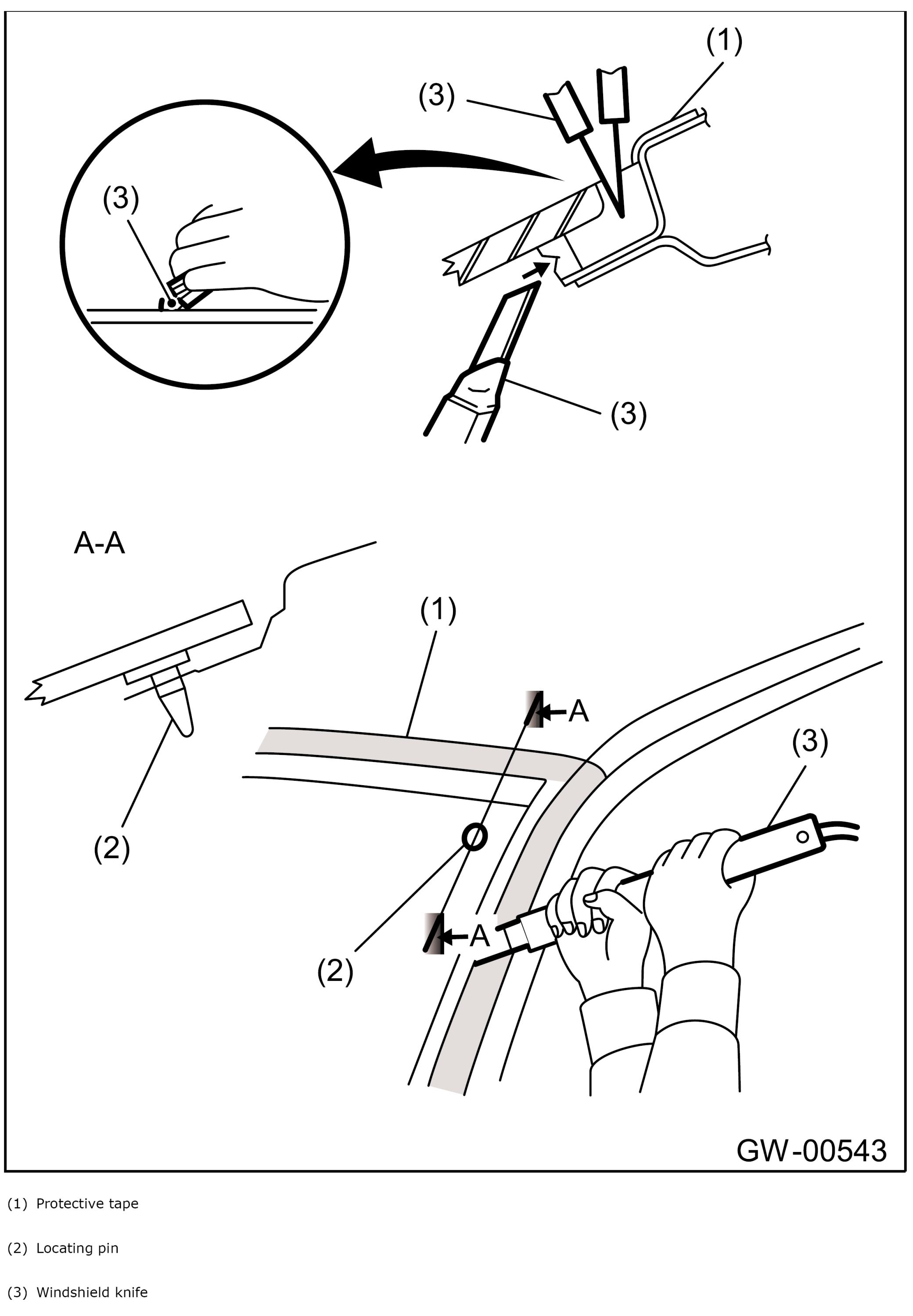 - Cutting of adhesive layer shall be started with wider gap between windshield glass and body.