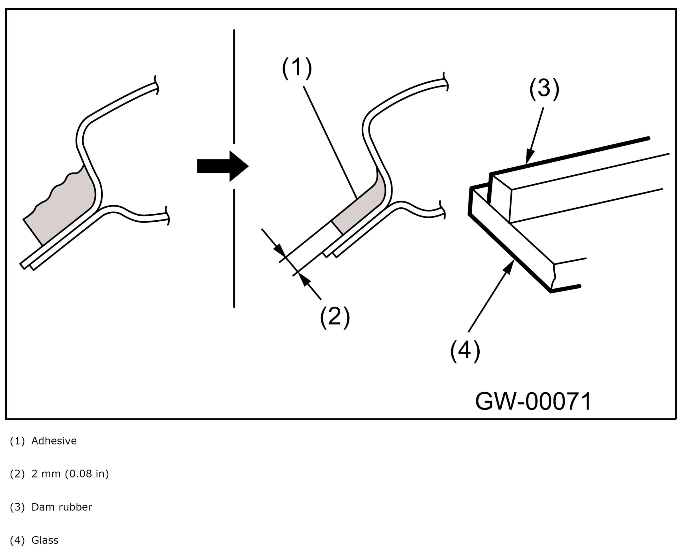- For minimum drying time and time the vehicle must be left standing before driving after bonding, follow the instructions from adhesive manufacturer.