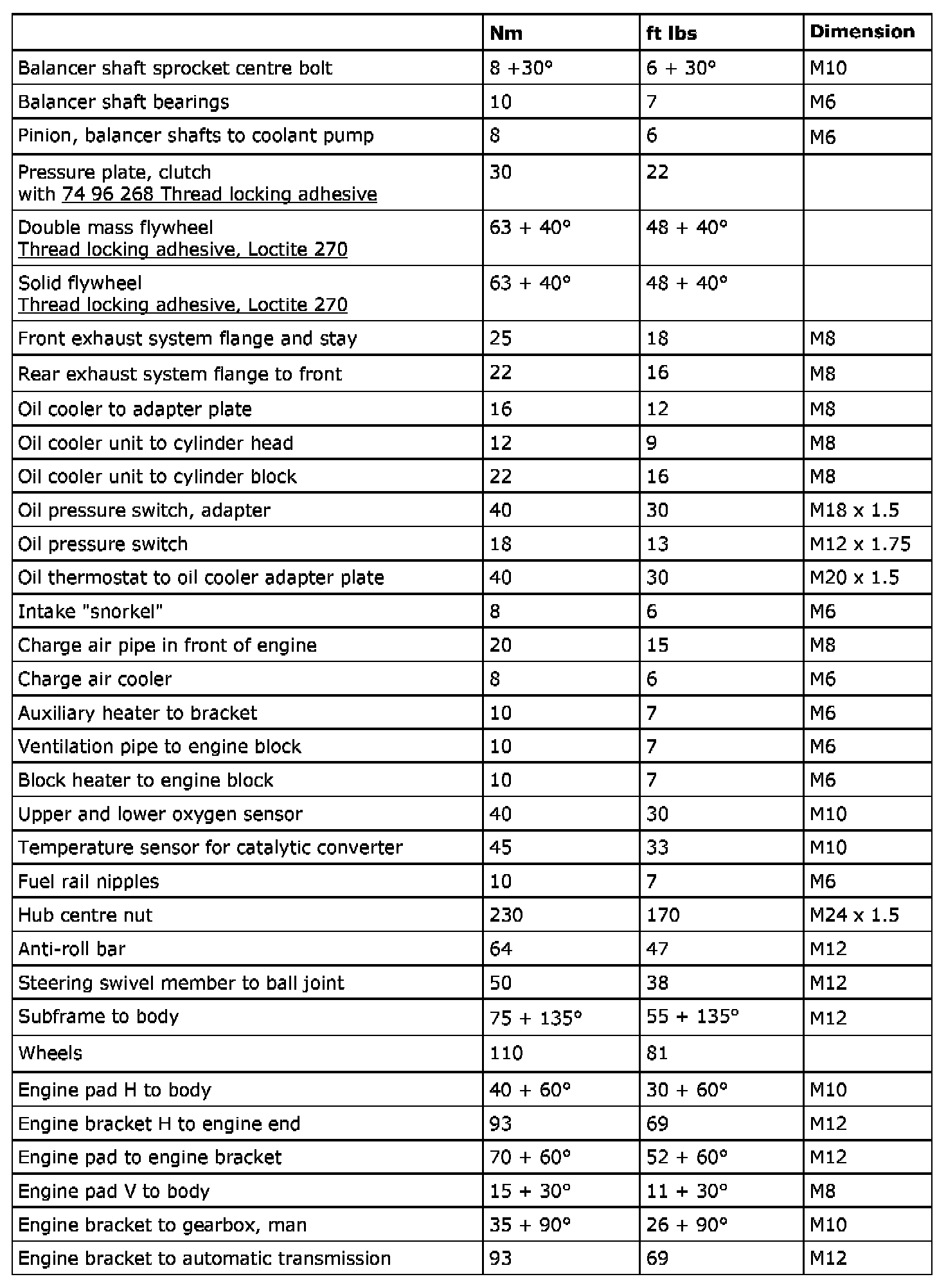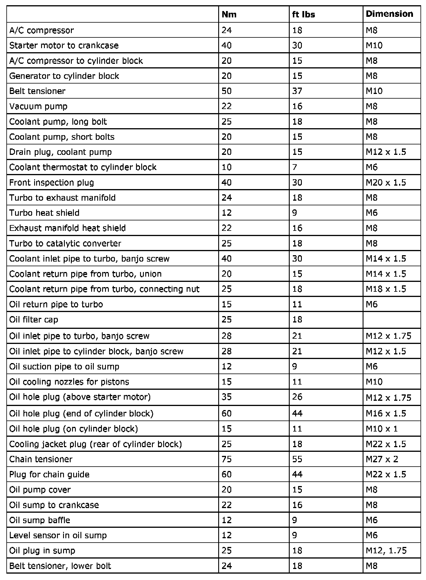 Tightening Torques