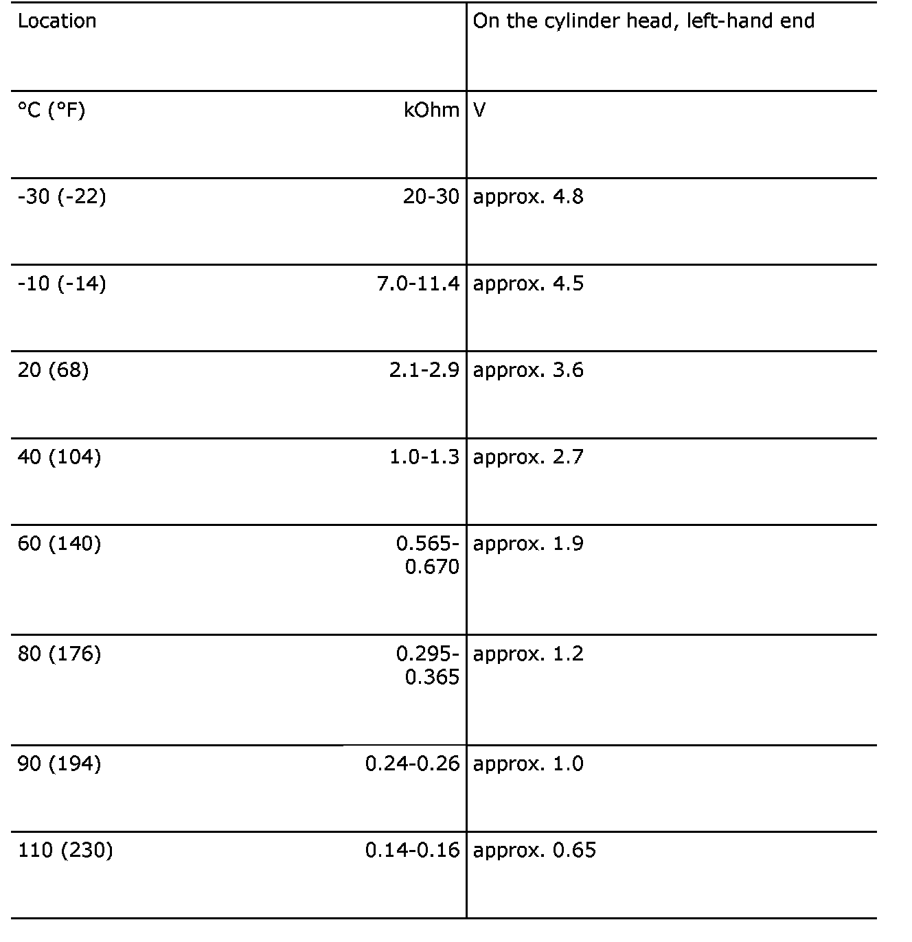 Coolant Temperature Sensor/Switch (For Computer): Specifications