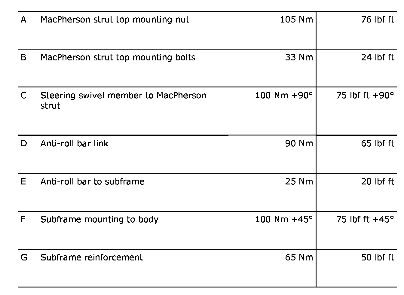Torque Specifications