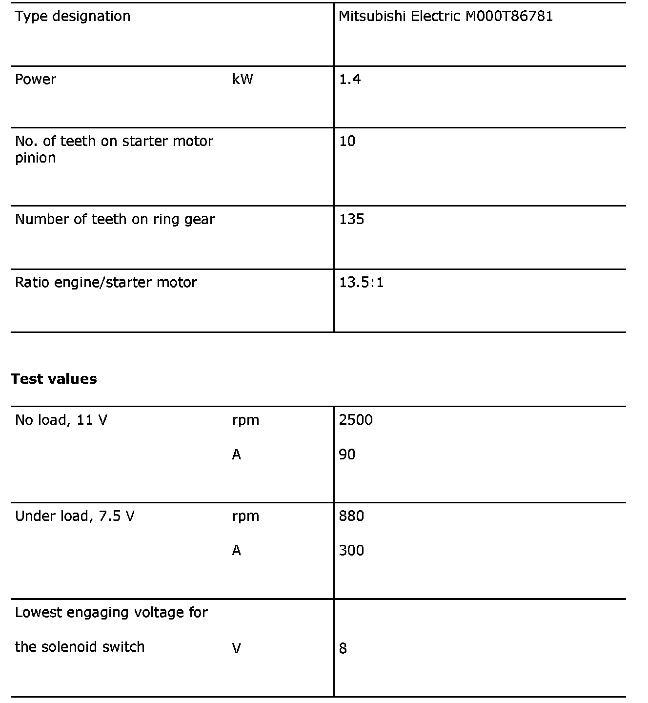 Starter Motor: Specifications