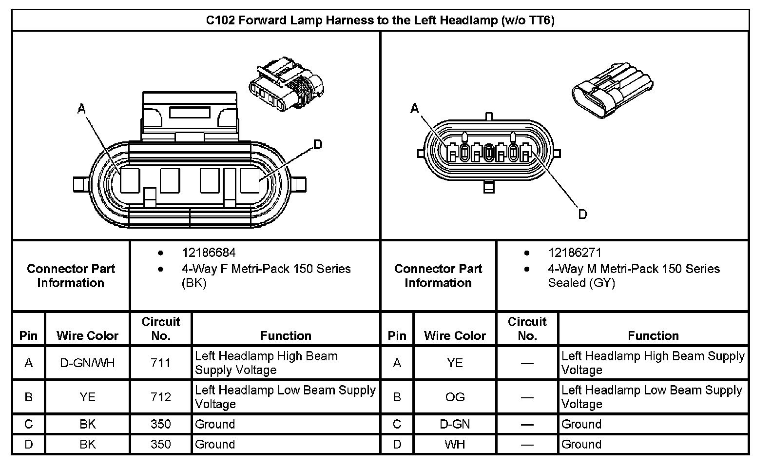C102 Forward Lamp Harness To The Left Headlamp (Without RPO Code TT6):