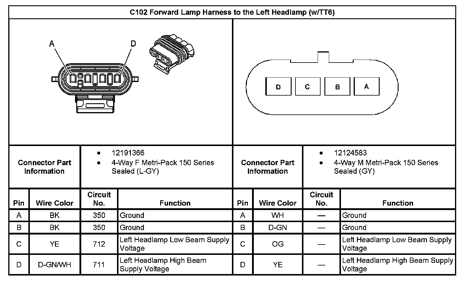 C102 Forward Lamp Harness To The Left Headlamp (With RPO Code TT6):