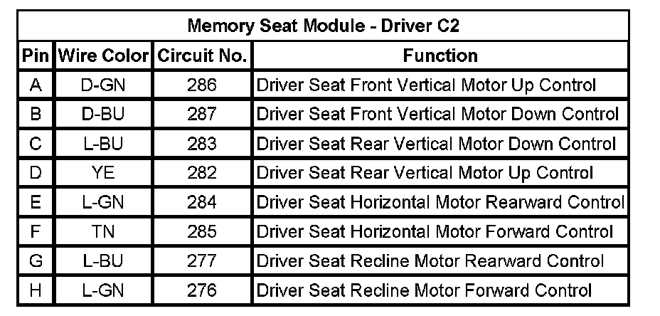 Memory Seat Module - Driver C2