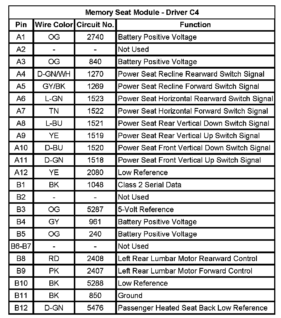 Memory Seat Module - Driver C4