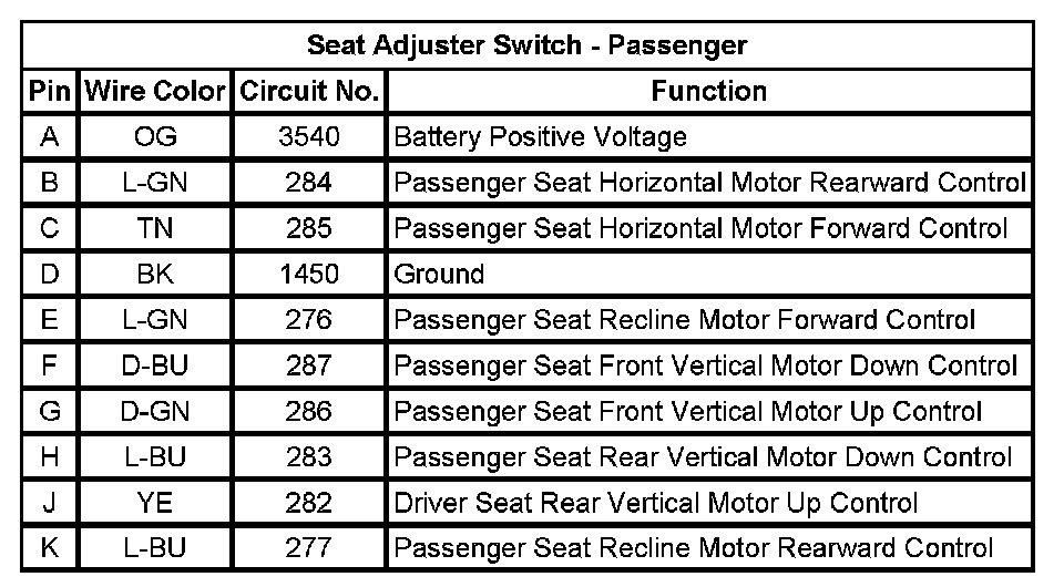 Seat Adjuster Switch - Passenger