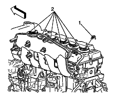 3. Remove the retaining bolts (2) from the ignition coils.