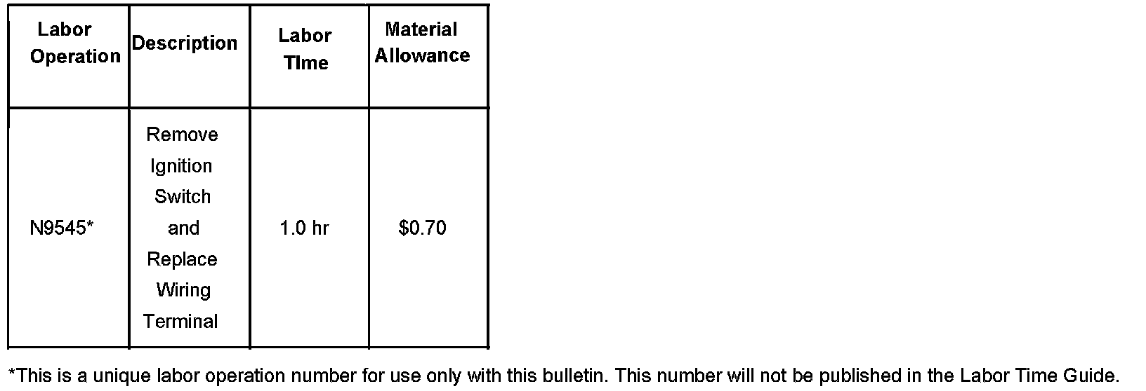 For vehicles repaired under warranty, use the table.