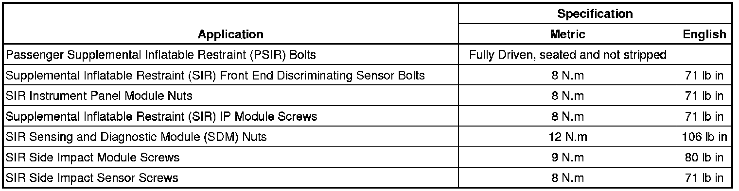 Fastener Tightening Specifications
