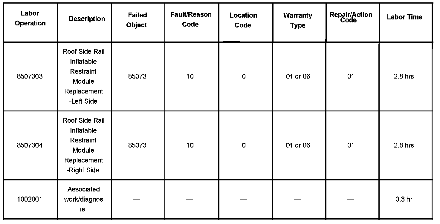 For vehicles repaired under warranty use, the table.