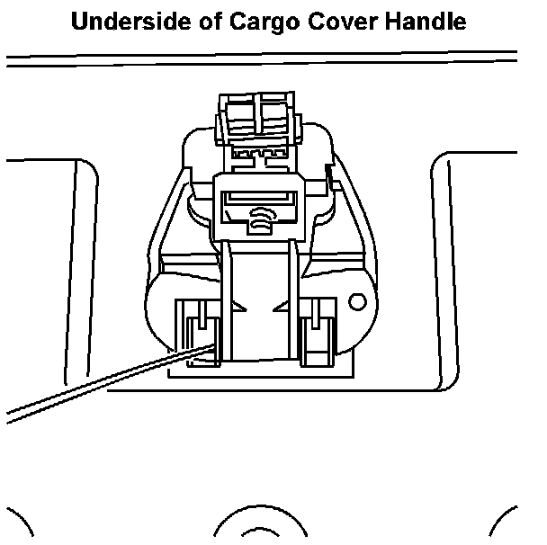 1. Using a flat-bladed tool, depress the two tabs that retain the handle to the cargo cover.