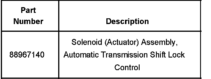 The automatic transmission shift lock control actuator is now available for service as a separate part. The actuator was formerly available only as part of the entire shifter assembly. DO NOT replace the shifter assembly if the shift lock control actuator requires replacement. Please refer to the Automatic Transmission Shift Lock Control Actuator Replacement procedure in the Automatic Transmission sub-section of the Service Information.