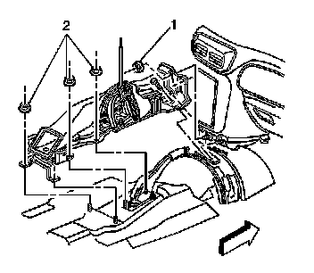 7. Remove the console bracket from the vehicle, by removing the retaining nuts (1) from the center instrument panel (I/P) bracket.