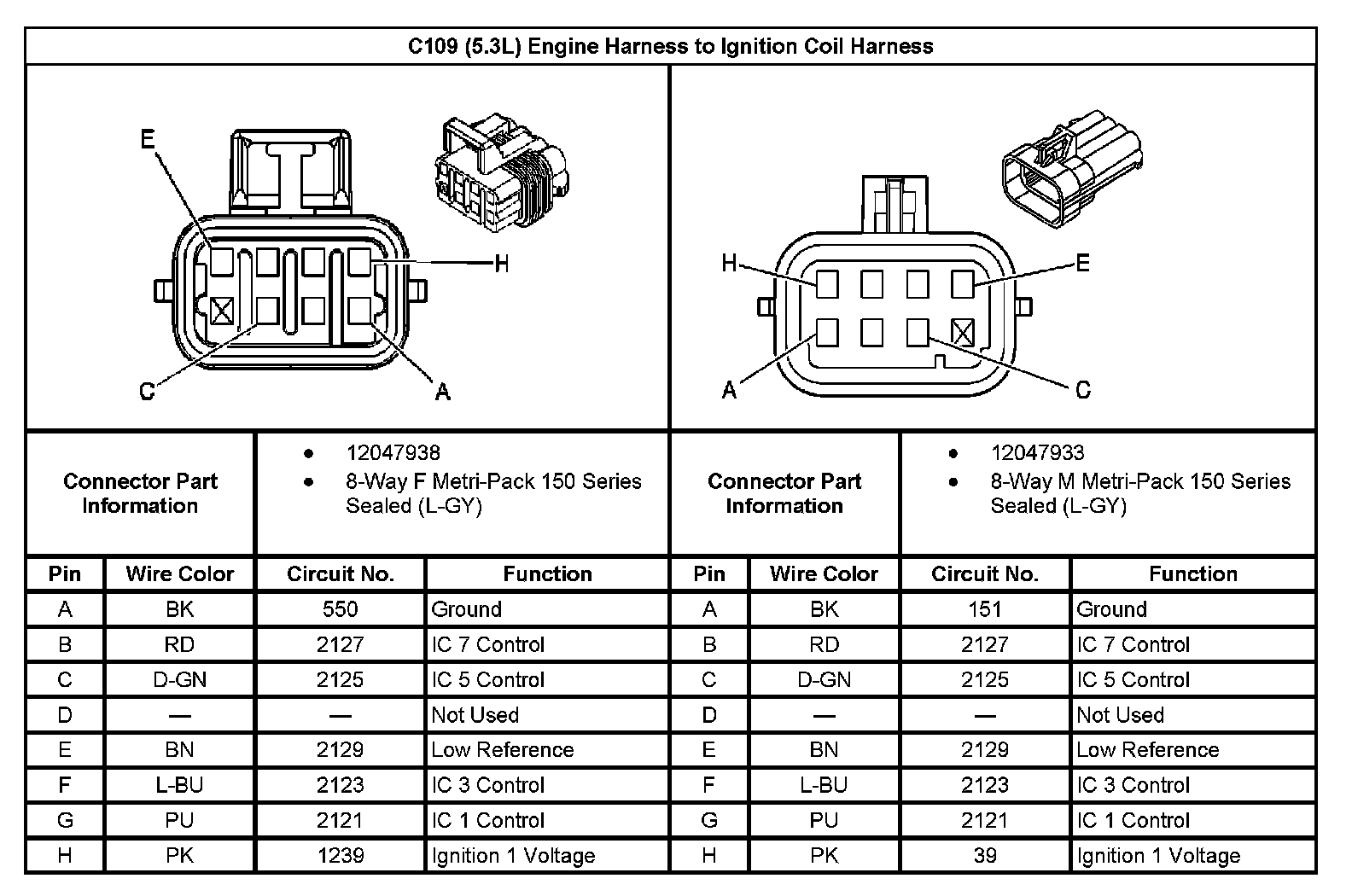 C109 Engine Harness To Ignition Coil Harness:
