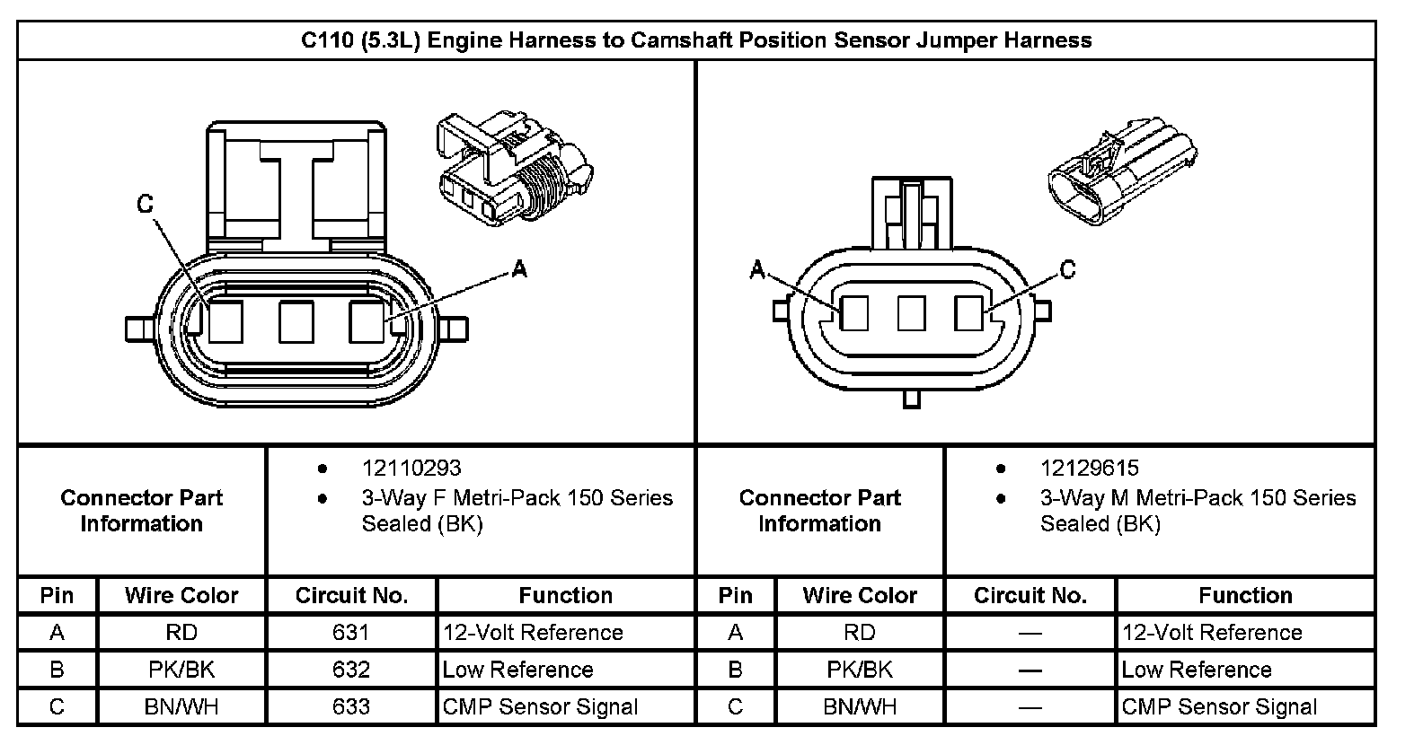 C110 Engine Harness To Camshaft Position Sensor Jumper Harness: