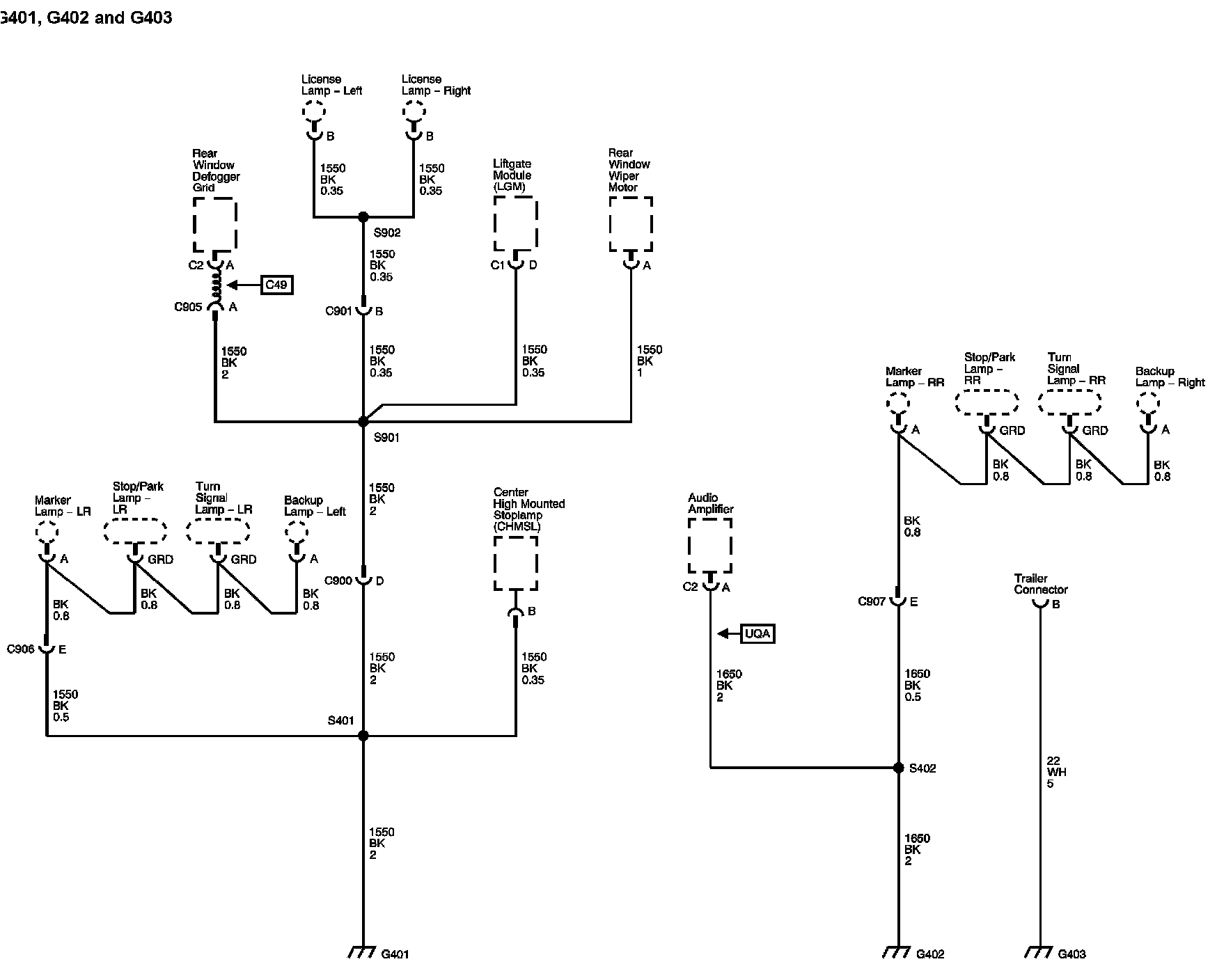 The locations for the Connectors, Grounds, Splices, and Grommets shown within these diagrams can be found via their numbers at Vehicle Locations.