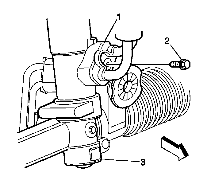 3. Remove power steering hose assembly to power steering gear mounting bolt (2).
