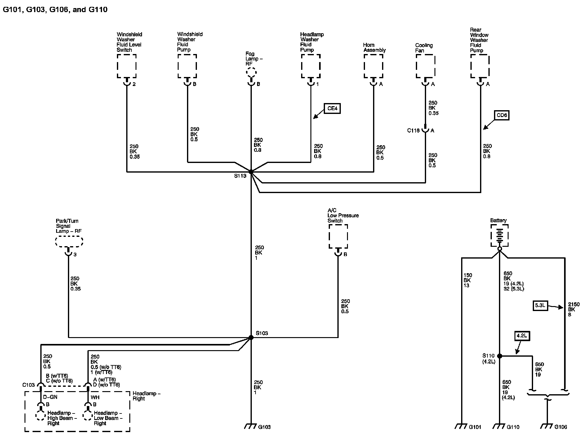 The locations for the Connectors, Grounds, Splices, and Grommets shown within these diagrams can be found via their numbers at Vehicle Locations.